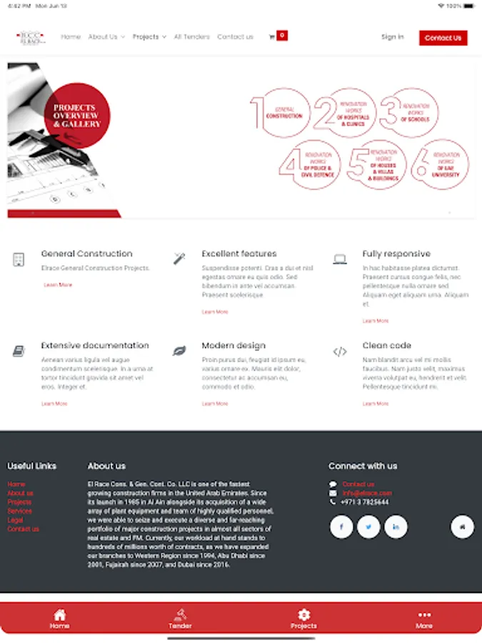 El Race Cons. & Gen. Cont. Co. LLC is one of the fastest growing construction firms in the United Arab Emirates. Since its launch in 1985 in Al Ain alongside its acquisition of a wide array of plant equipment and team of highly qualified personnel, we were able to seize and execute a diverse and far-reaching portfolio of major construction projects in almost all sectors of real estate and FM. Currently, our workload at hand stands to hundreds of millions worth of contracts, as we have expanded our branches to Western Region since 1994, Abu Dhabi since 2001, Fujairah since 2007, and Dubai since 2016.