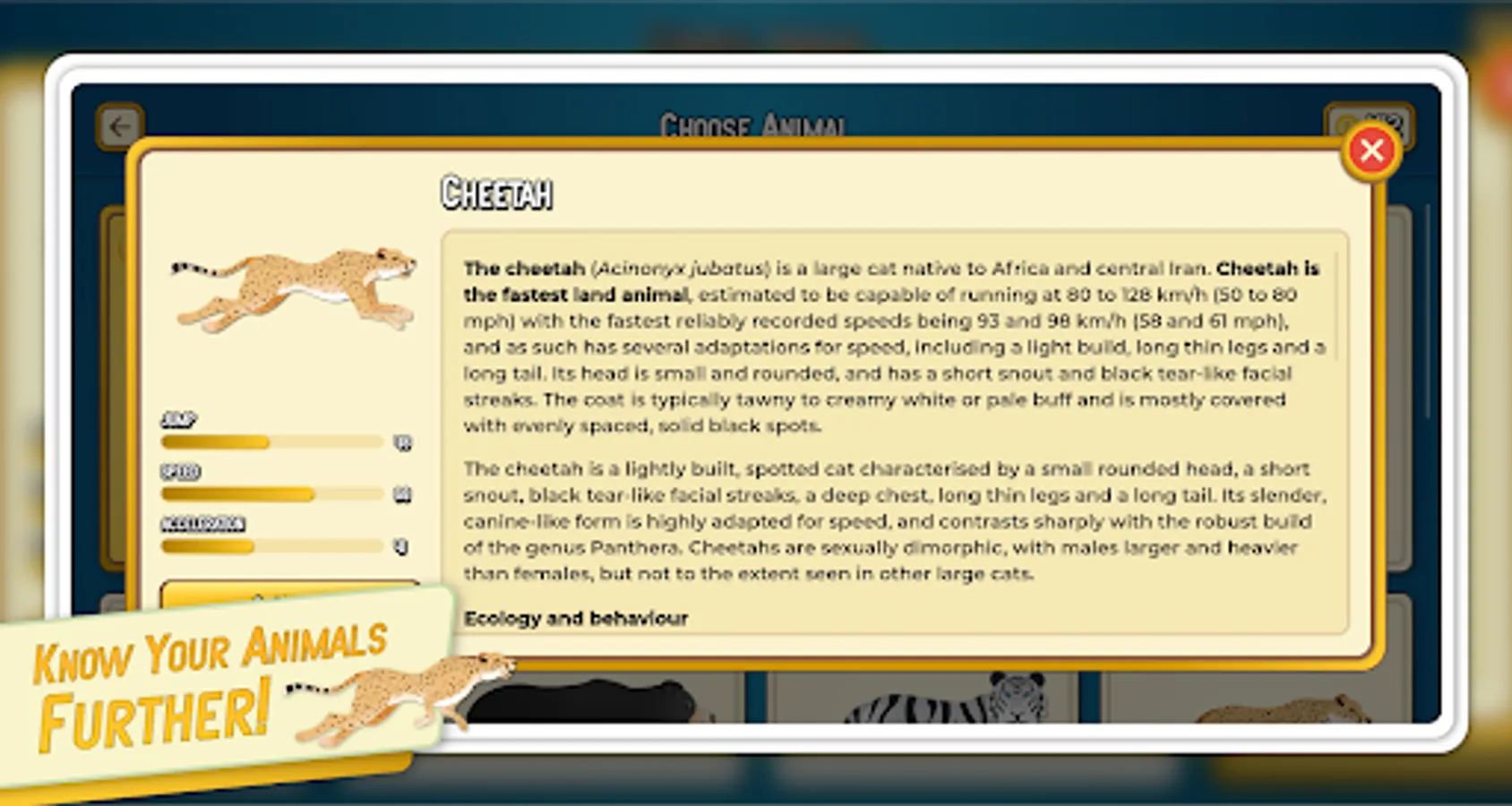 Collect and play as different animal characters while uncovering fascinating facts about their unique physical and behavioral traits, the challenges they face in the wild, and the critical conservation efforts underway to protect them.
