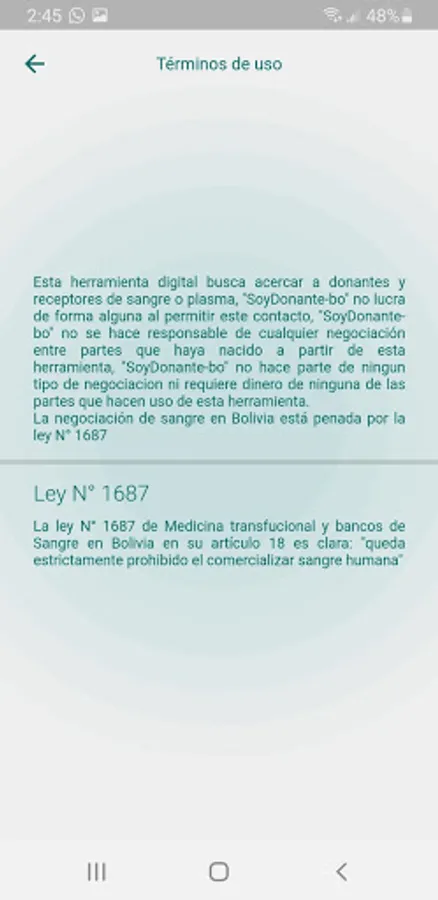 This application has the purpose of bringing blood or plasma donors closer to recipients, it is free and created by a multidisciplinary team of young Bolivians in order to help our society, giving away a tool in favor of the common good.