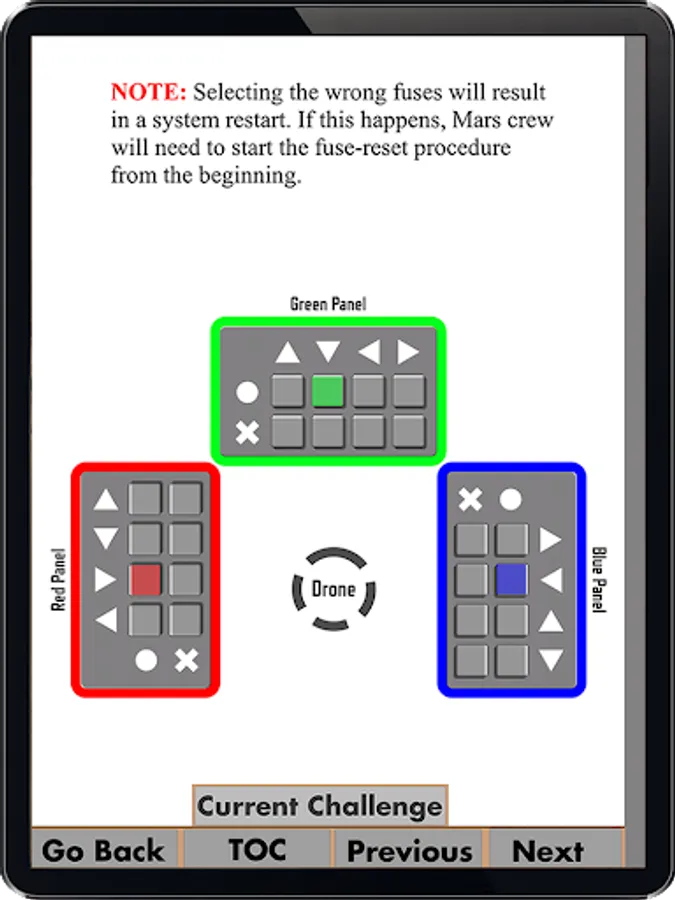 The object of the game is for the Mars player to leave Mars basecamp in order to map the planet. To achieve this goal, the two players must work together to overcome three challenges.