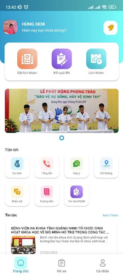 The application for booking examination for patients of Quang Ninh General Hospital is located in the hospital's 4.0 software system, authorized for development by elSAGA technology solution joint stock company, including many useful features. for users: