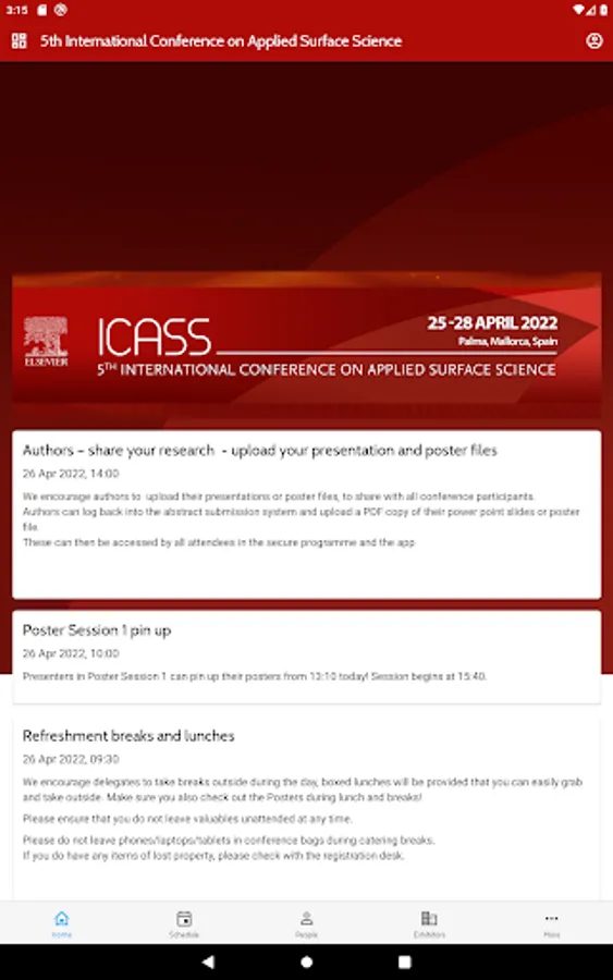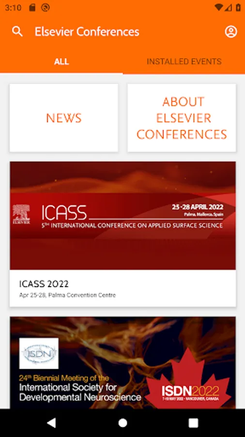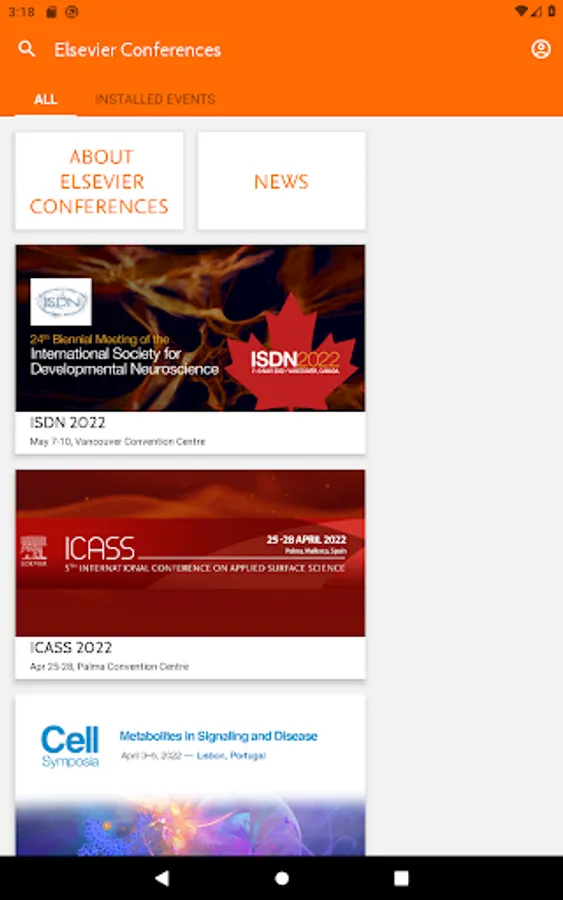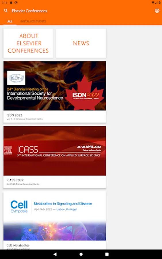 With over 50 conferences a year the Elsevier portfolio of events provides a direct route to global researchers and industry representatives in a number of communities. Our conferences App provides a rich delegate experience with access to conference programmes, speaker information, abstracts, floor plans and sponsor & exhibitor information.