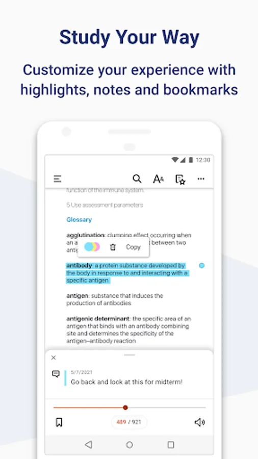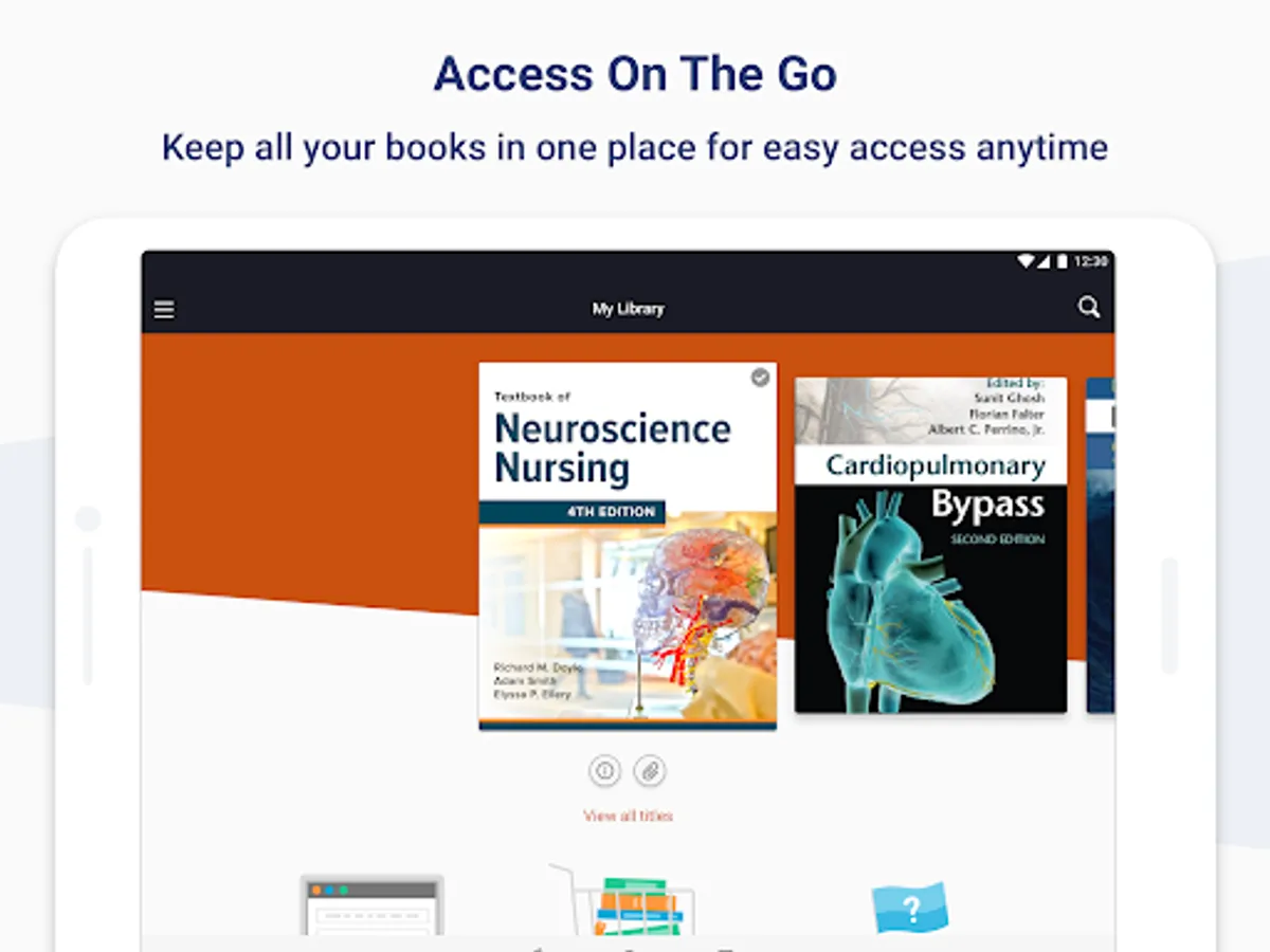 Download the ClinicalKey Student Bookshelf app to access your personal bookshelf across all devices whenever you need it. Enhance your study experience with tools designed to build and improve your medical knowledge; making and sharing notes, highlighting key text and creating flashcards.