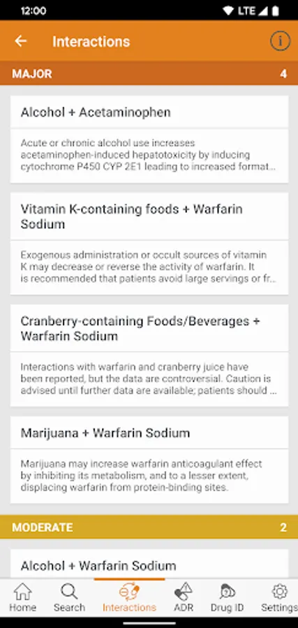 • Drug-to-drug interaction report: immediate feedback on interactions as you enter drugs, leading to an easy-to-scan synoptic description of interactions categorized by severity. Unique to Clinical Pharmacology, optionally check for interactions between drugs and other life-style factors such as diet, smoking, alcohol consumption and more. Tap through the synopsis to see a detailed description of the interaction, which can be toggled between a professional and consumer view to share and consult with patients.