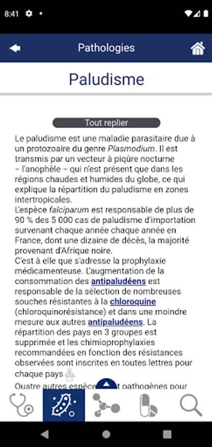 • More than 1,000 pathologies, classified into 18 specialties (including a new specialty "Geriatrics") with good clinical practices and prescription strategies: