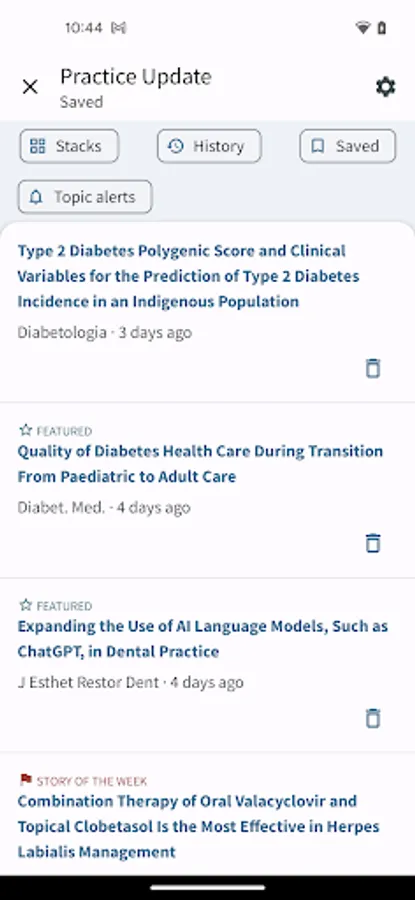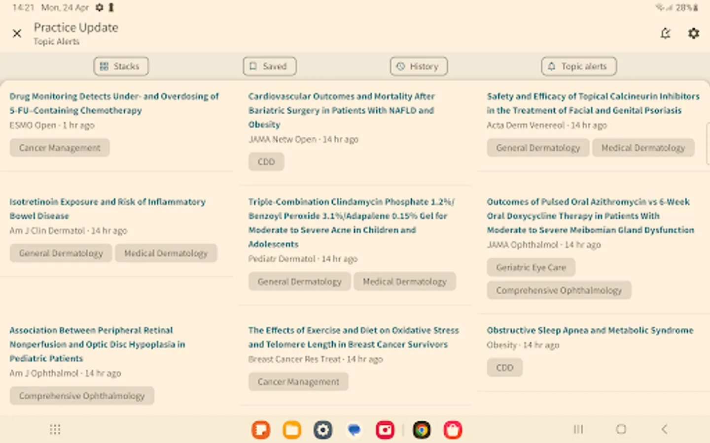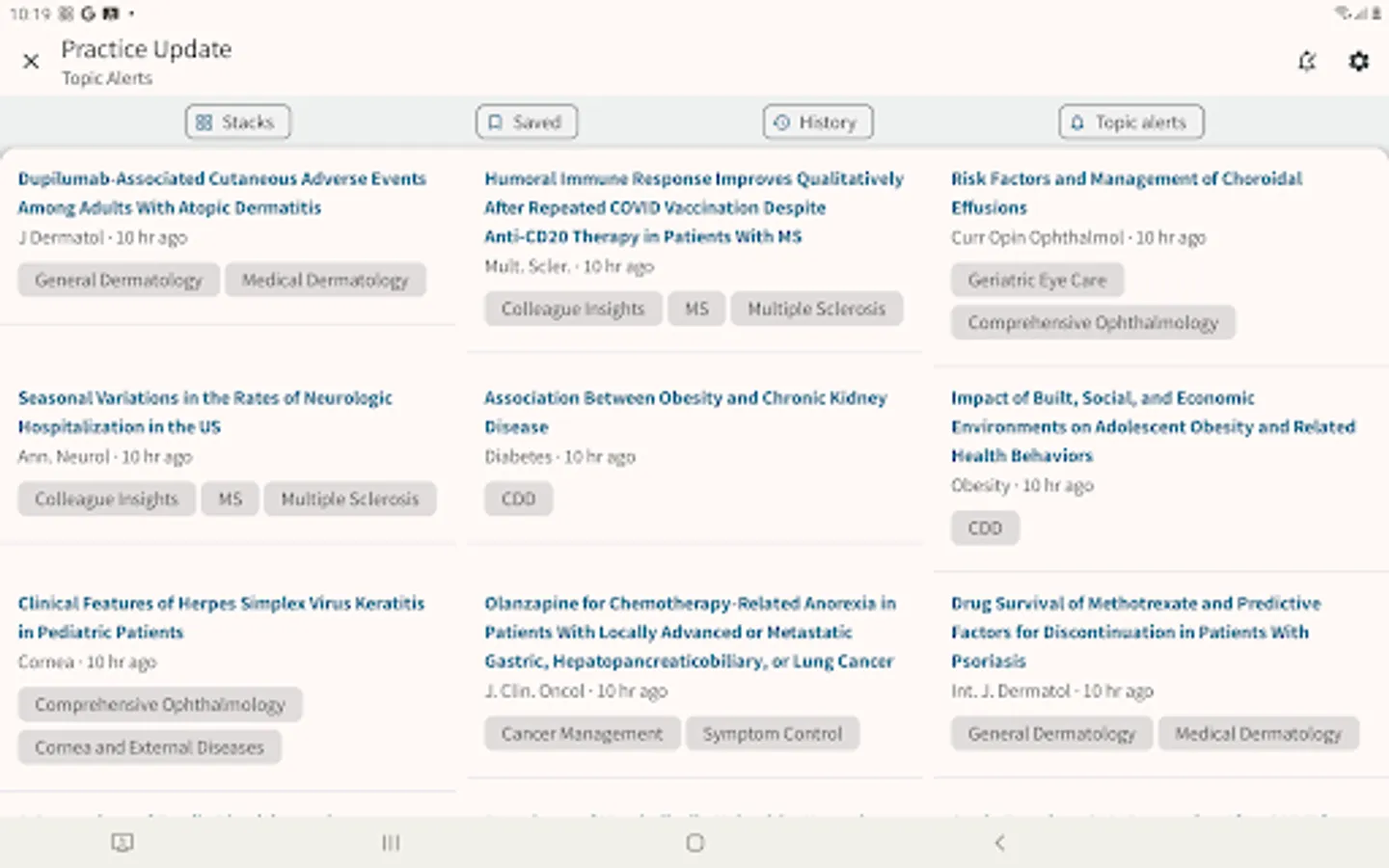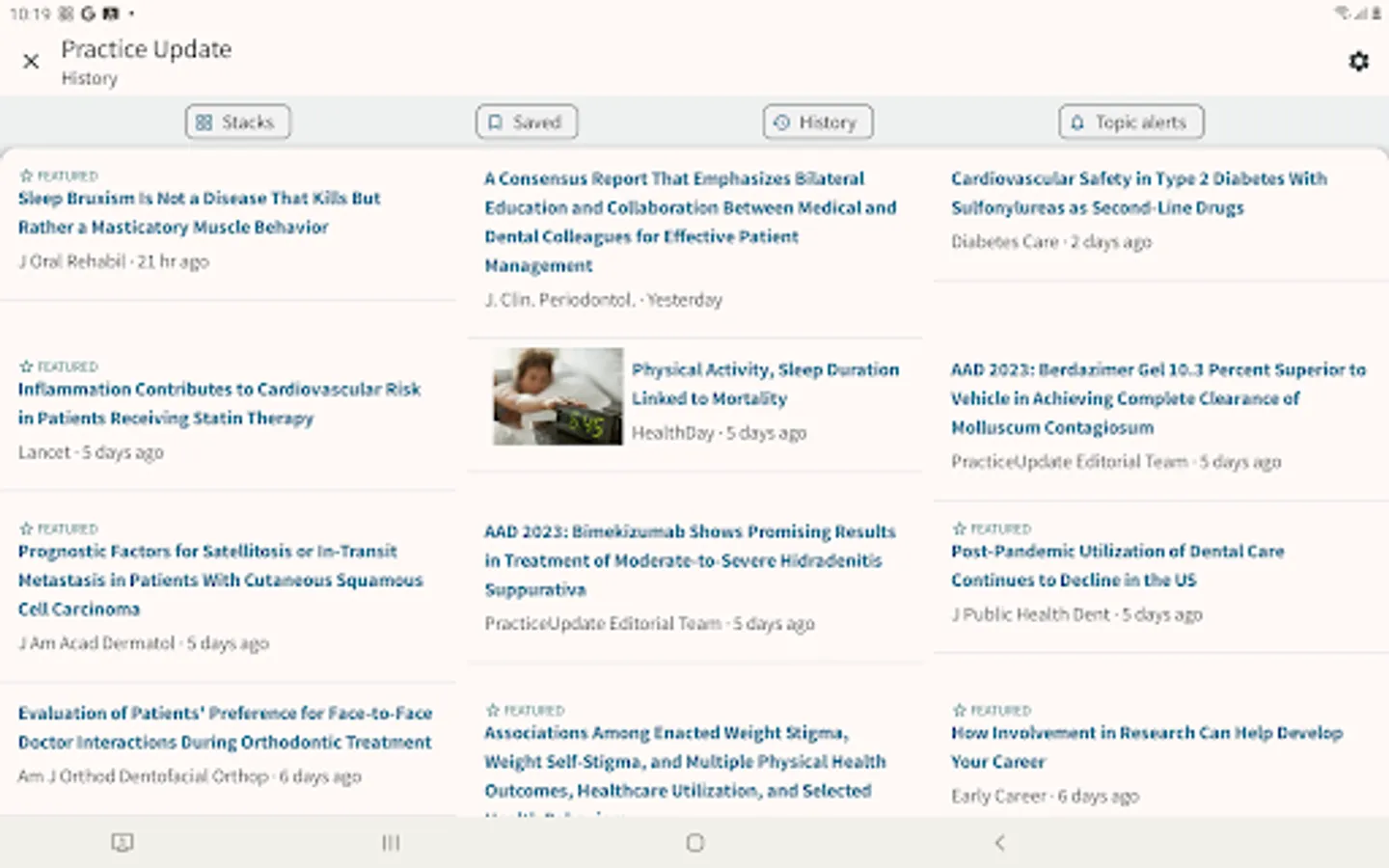 You’ll see a stack for each channel you have subscribed to on PracticeUpdate.com. We refresh your stack daily so you’ll only see the latest information.