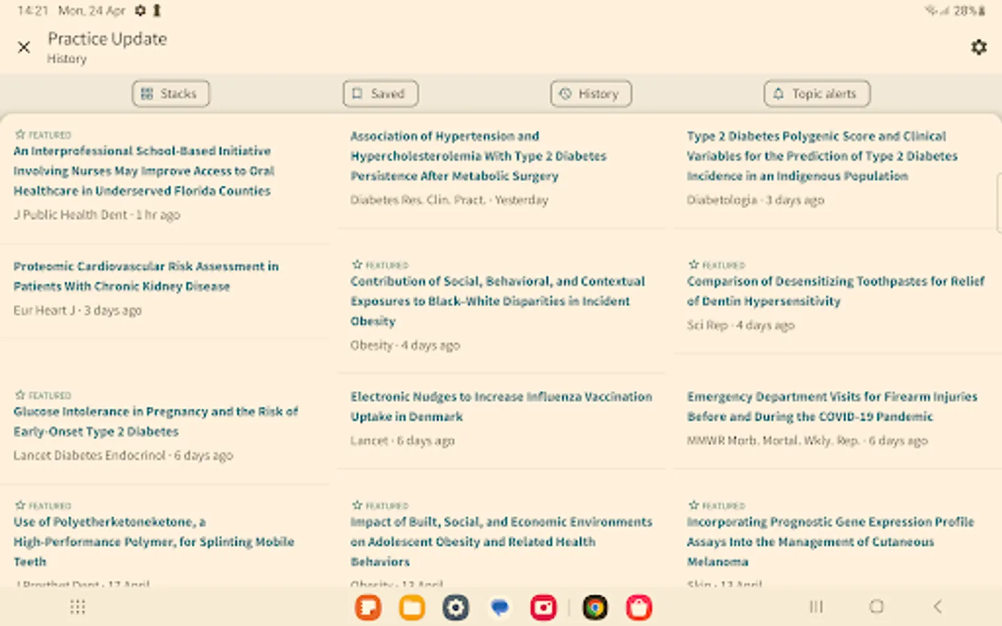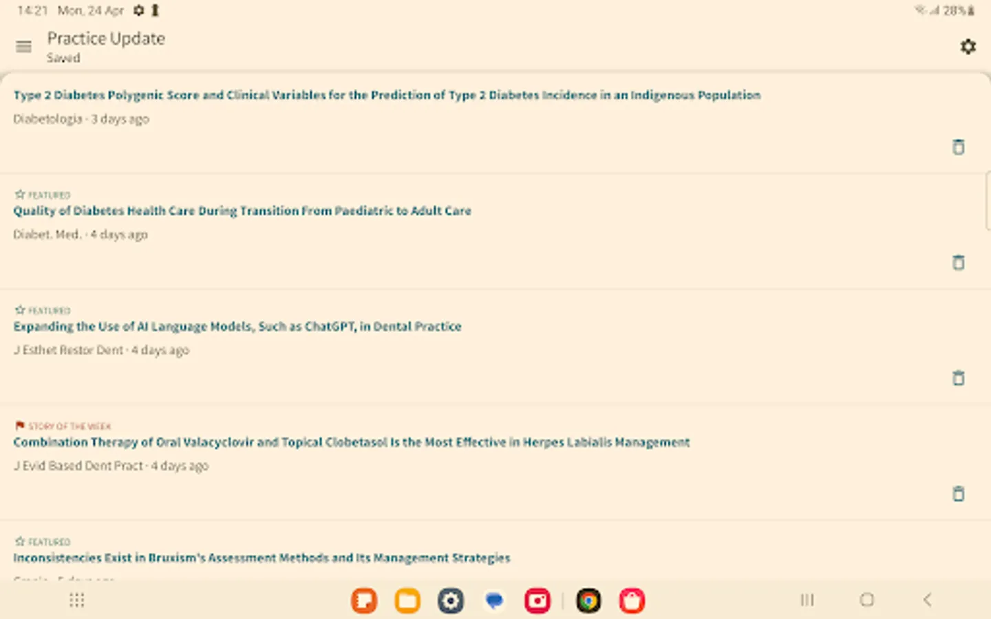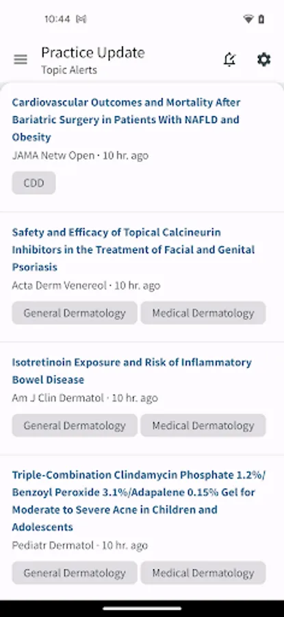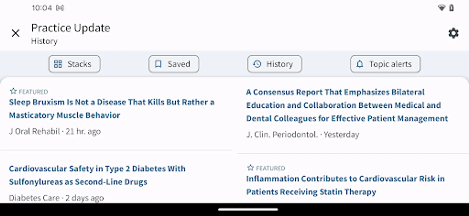 • Select the headline on any card to read an item immediately on PracticeUpdate.com