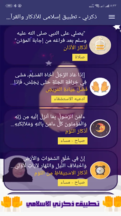 Remind me of supplications, supplications and the Holy Qur’an contains all sections of the supplications and supplications and listen to the Holy Qur’an in full with high sound quality and contains an alert with the remembrance that pops up on the phone screen for a period specified by the user.