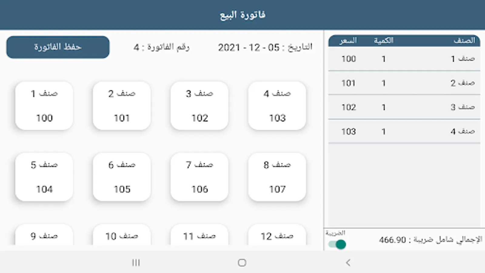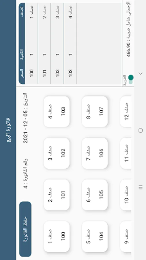 واجهة سهلة وبسيطة لعمل وحفظ الفاتورة