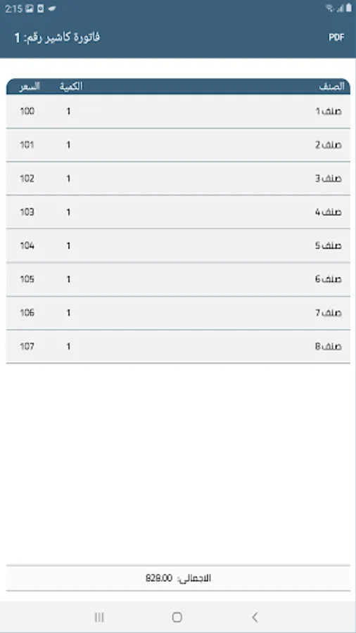 استخراج الفواتير فى ملف pdf