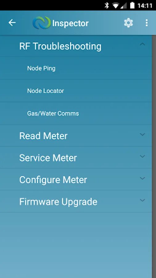 Inspector allows performing RF troubleshooting, reading, service and configuration operations. Example of RF troubleshooting operations are testing RF connectivity of the meters, locating nodes in range, and reporting RF signal strength.