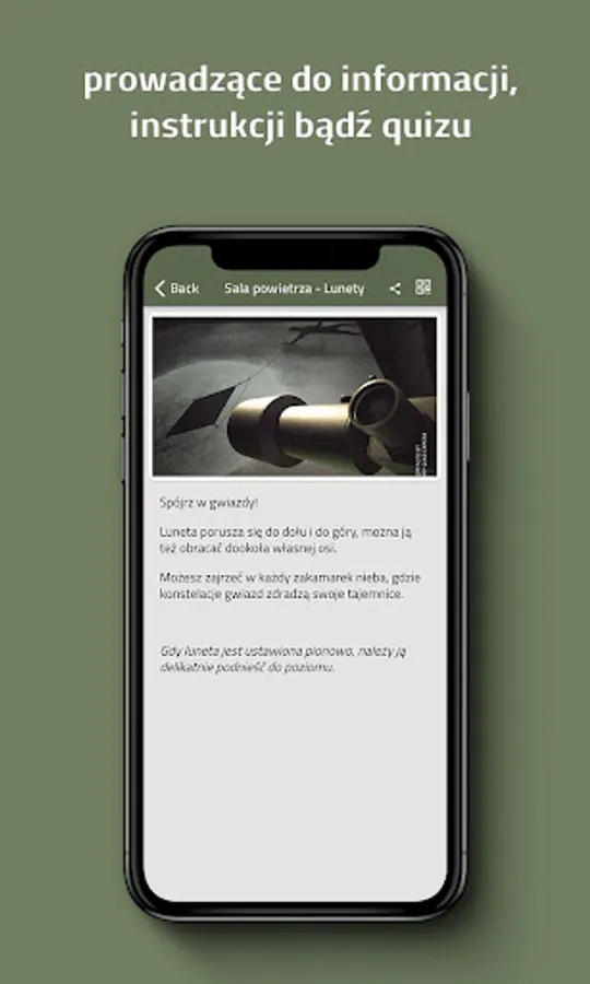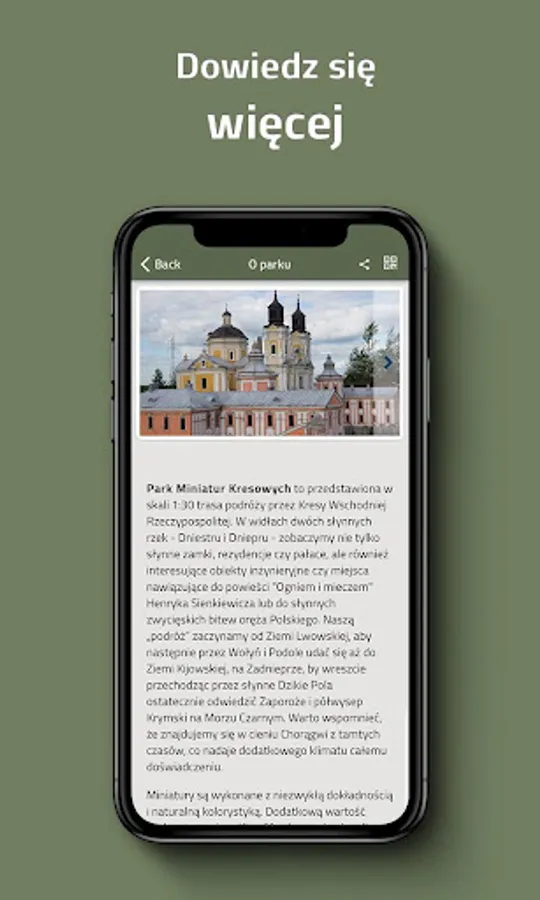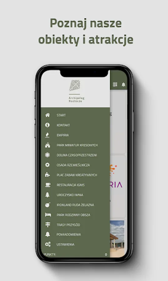 The informational part of the application contains information about the objects of the Roztocze Archipelago, which will reveal their secrets in an easy and pleasant form. The Roztocze Archipelago in Budy near Zamość includes: the Empiria of the Senses and Elements of Roztocze, the Kresy Miniature Park, the Craft Settlement with the Old Mine, the Regional Diversity Fair, the Space-Time Valley and the Creative Fun Park. The application also provides manuals for operating devices in Empiria.