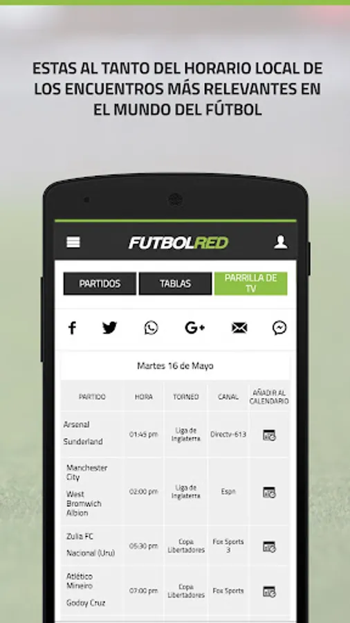 With the application of FUTBOLRED you can have all related to your favorite team, statistics, videos and the best pictures of parties that brings the day, when the ball is moving news.