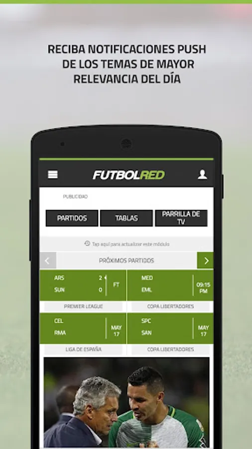 FUTBOLRED APP offers the best sports news Colombian and international soccer. Receive alerts for goals, news, schedules and results Eagle League, UEFA Champions League, Premier League, Women's League, La Liga, Playoffs World and many more.