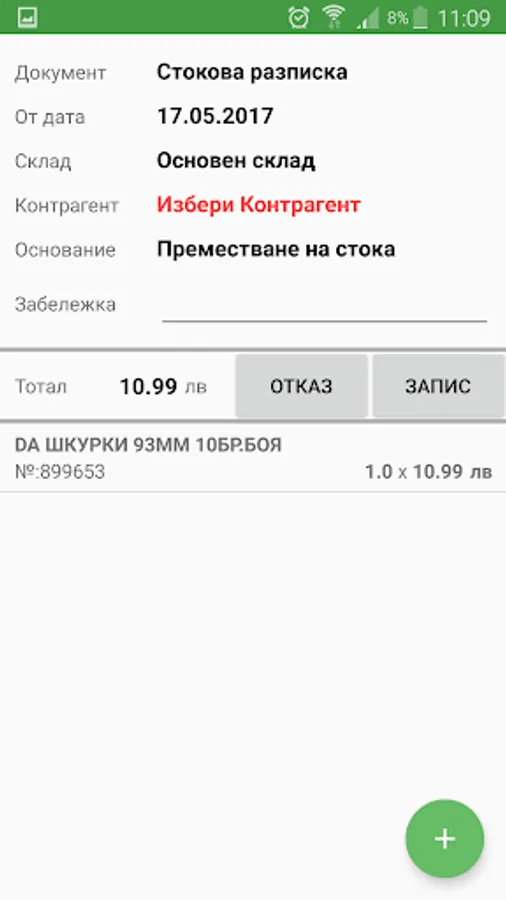 At the client may be given cash receipt, invoice, stokova razpiska, and to make inquiries about balances, turnovers and obligations of the customer.