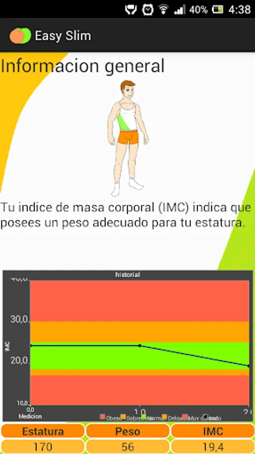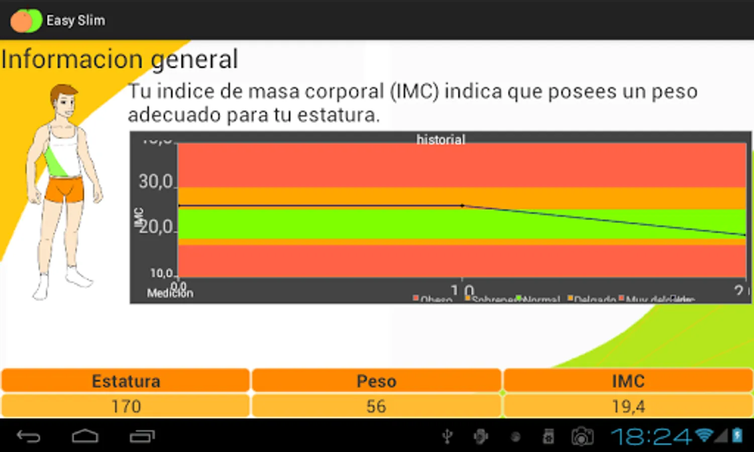 Easy Slim is an application for mobile devices that helps you to guide an ideal weight and also personalized recommendations, calculate your body mass index and helps you determine what you should do to be healthy!