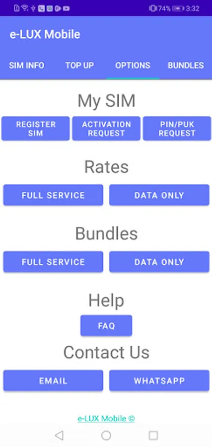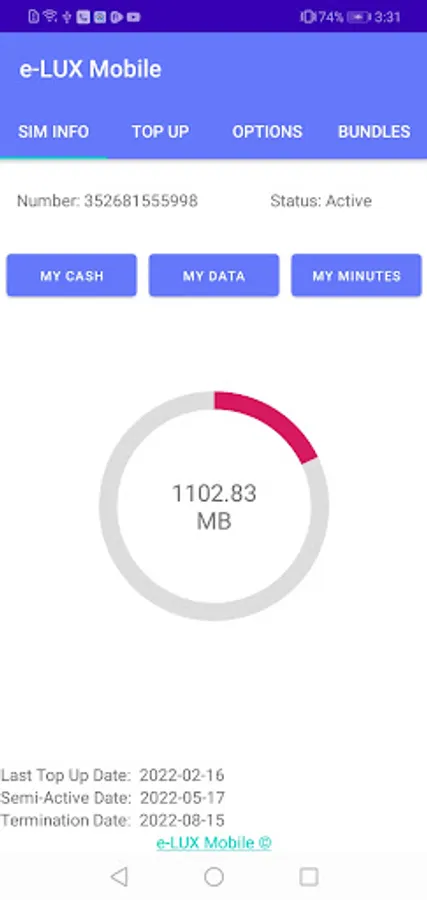 Review your e-LUX Mobile SIM data, available features and bundles.