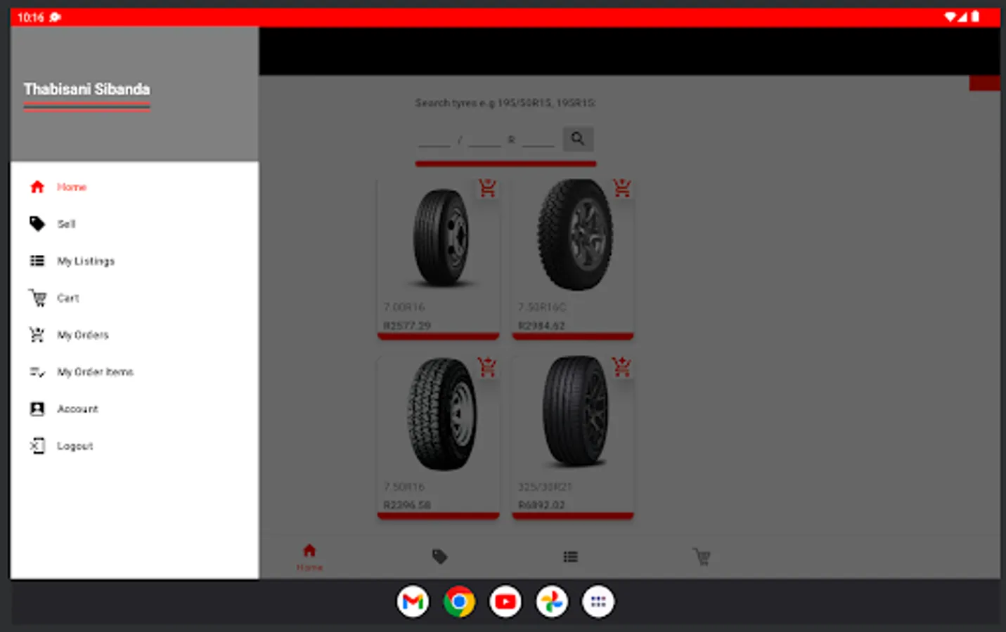 Users that need to sell tyres will have to register as vendors. This process includes submitting a form. After submitting the form, the Elvent Tyres team will verify the vendor's identity which may involve visiting the vendor's business place. Once vendor registration is complete, the user can sell tyres using the App.