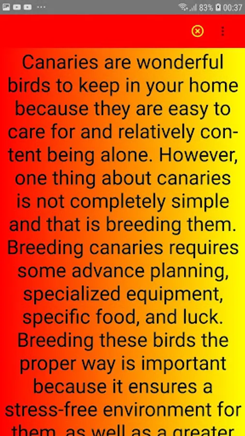 is an application to learn everything about Canary birds from the breeding of egg whites to the diseases of the birds Canar to the best possible treatments that can be used by the breeder to be all birds in good health and also has a special calculator for the reconstruction of birds and a special calculator for the dates of hatching as you can provide Your access to improve the content and email us
