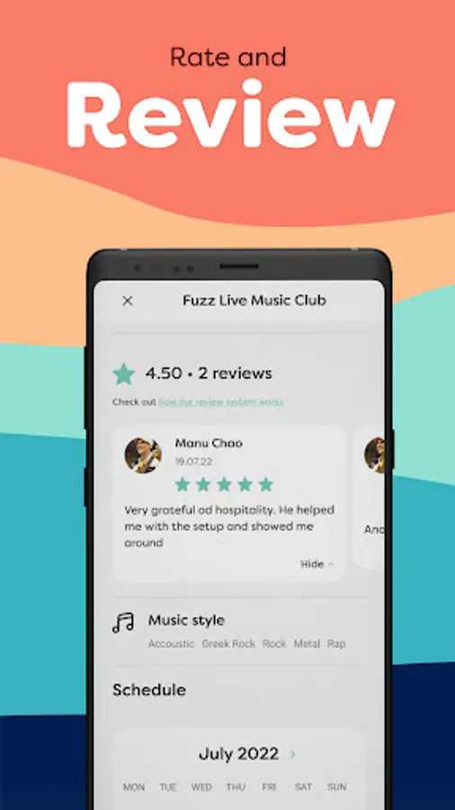 - Discover venues at your local city or in a different city. Filtering to the genre that you prefer,