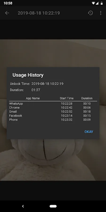 • If the camera unavailable (either it is in use by other apps or locked by Android system) when the phone is unlocked, the event will still be recorded with a timestamp.