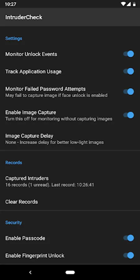 • IntruderCheck keeps the most recent 10 unlock events. There is no such limitation if you upgrade to PRO mode.