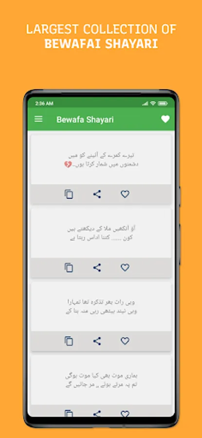 Whether you're looking for words to heal your broken heart or seeking solace in the beauty of Urdu poetry, "Urdu Bewafa Shayari" app is your ultimate companion. Let the verses of renowned poets and wordsmiths accompany you on your journey of emotional catharsis and self-discovery.