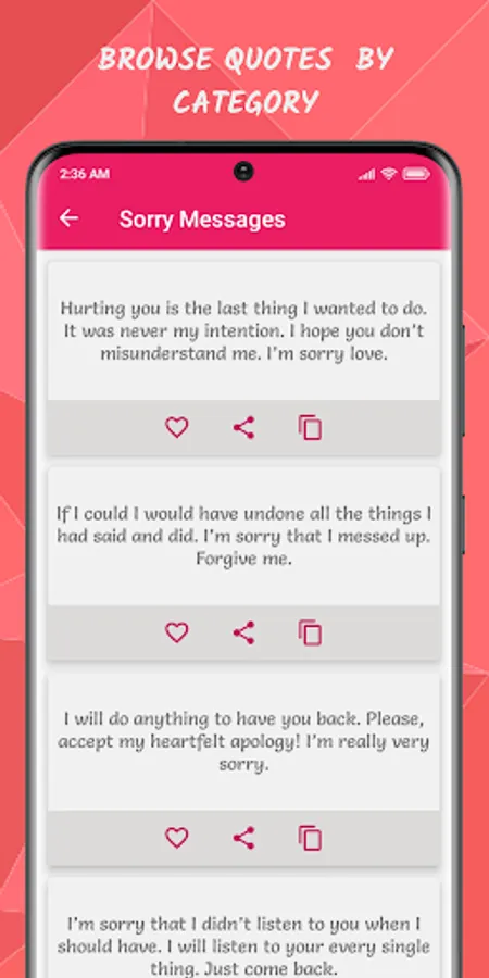 You can share your feelings from this app. We have collect all types of feeling status for you. So you can easily get your feeling and express to your love.