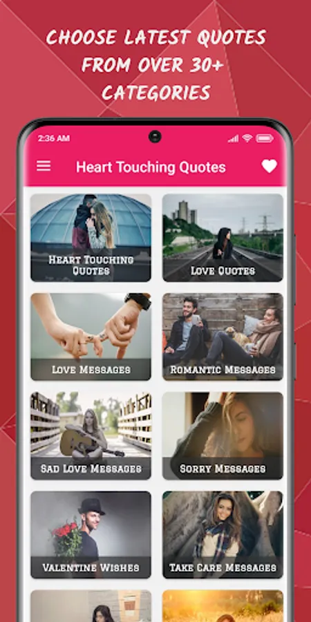 Heart Touching Quotes is the most beautiful and colorful quotes application which has a collection of inspirational quotes on life, emotional quotes, love quotes, friendship, success leadership & motivation. This is very good app for express your feelings to your loved ones.