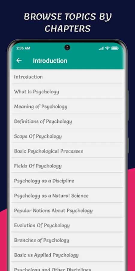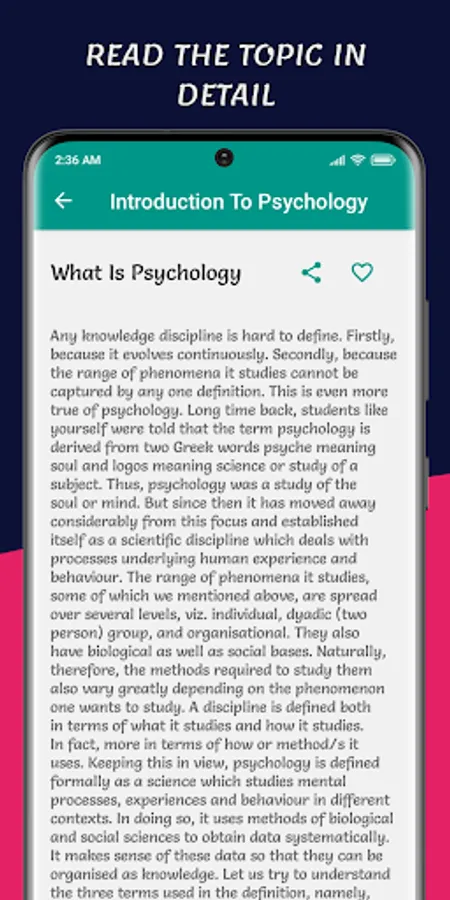 Introduction to Psychology app provides you useful information about Psychology. This app is designed for students, teachers and general readers who want to learn Psychology.