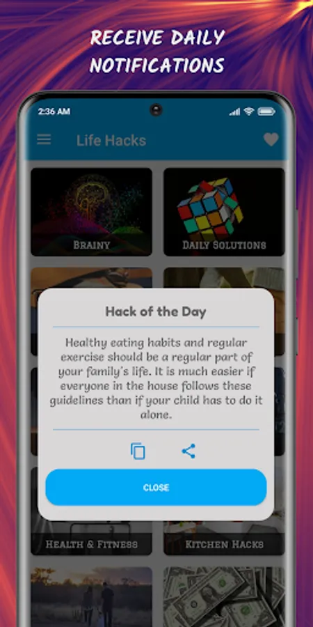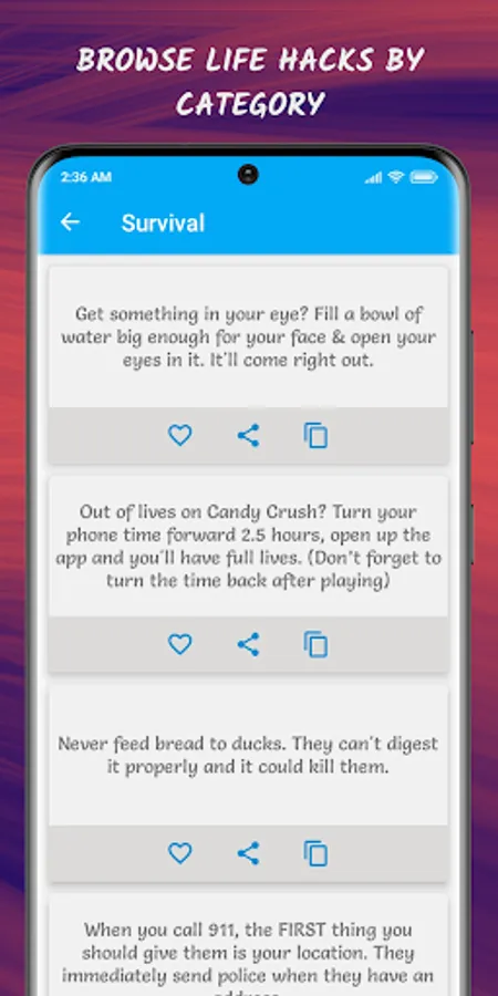 Life Hacks is extremely easy to navigate and you have the ability to quickly share idea with your friends.