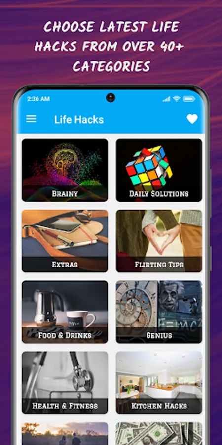 This life hacks app is a free and easy-to-use and contains tons of life tips in different categories such as technology tricks, health and drinks, money savers, etc. With these life tips you can learn a lot of knowledge and tricks to make your life easier and happier. You will find this app very helpful, and also you can share the life tips with your classmates.