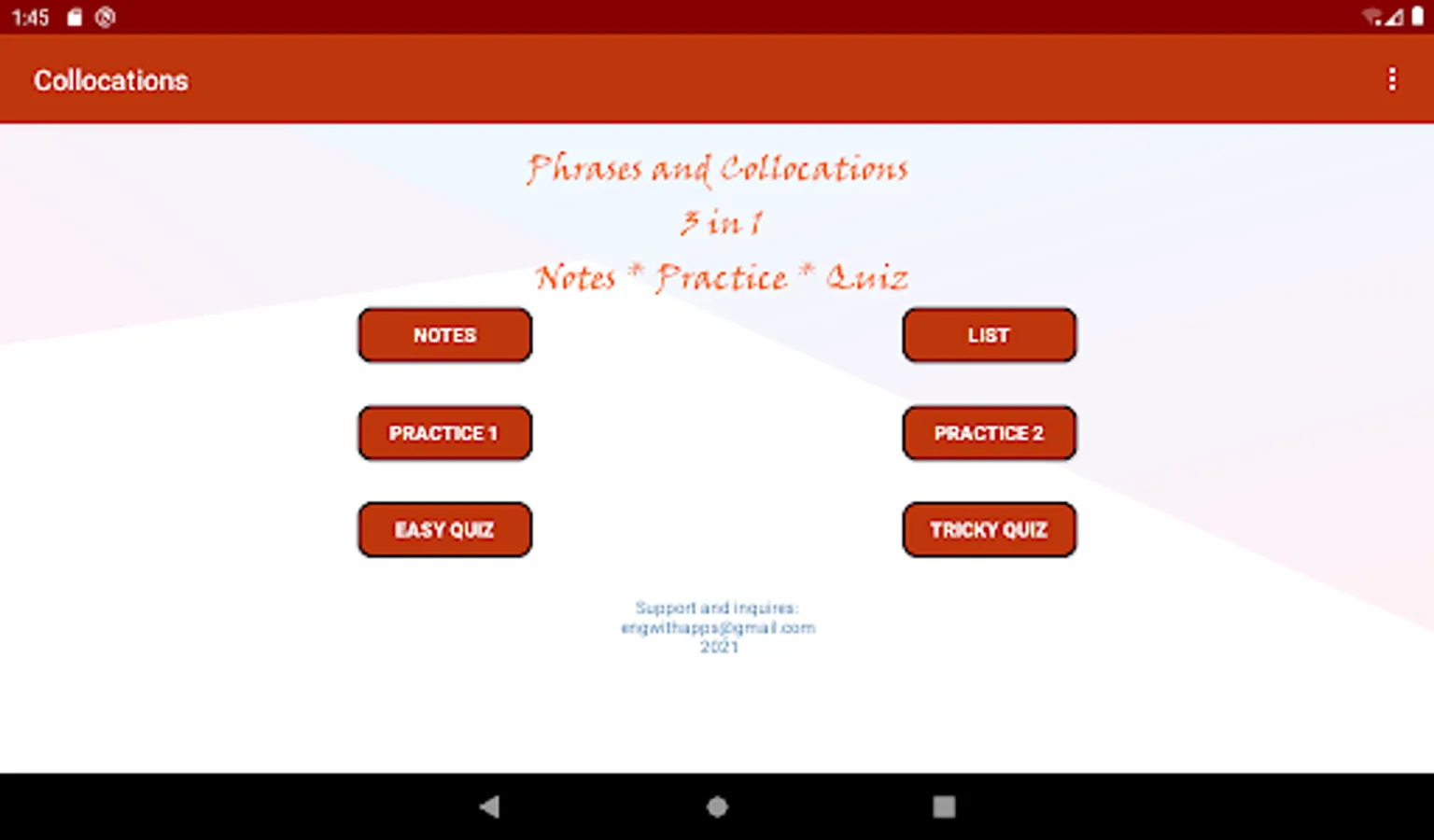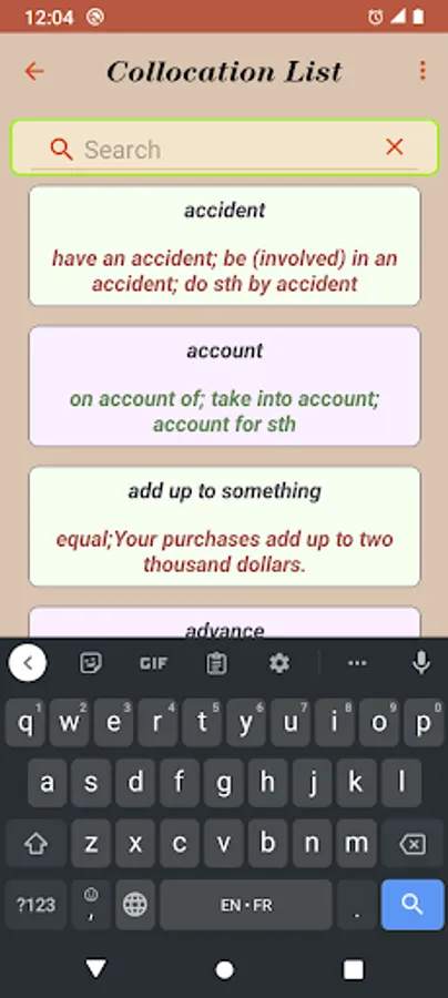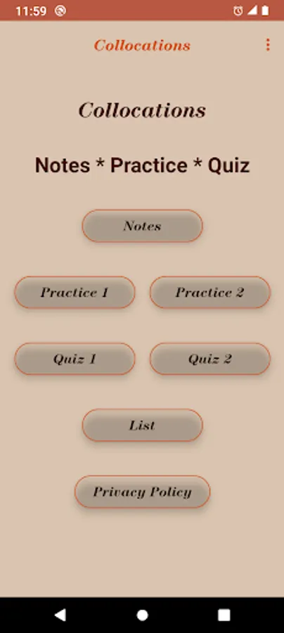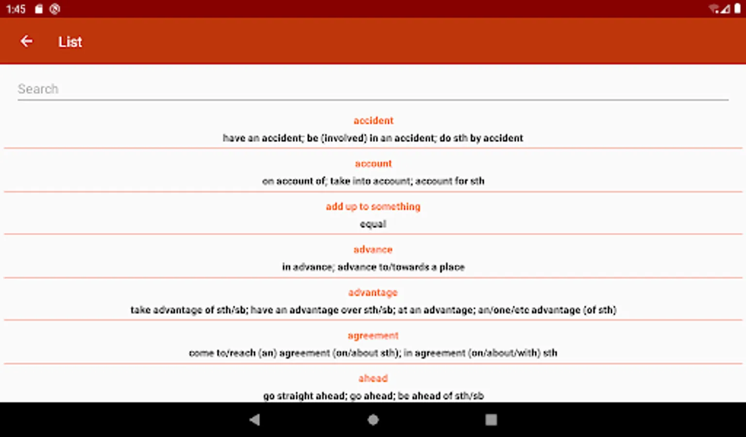The List activity offers a scrolling list of the most common collocations which B2 level learners are expected to know and feel comfortable with.