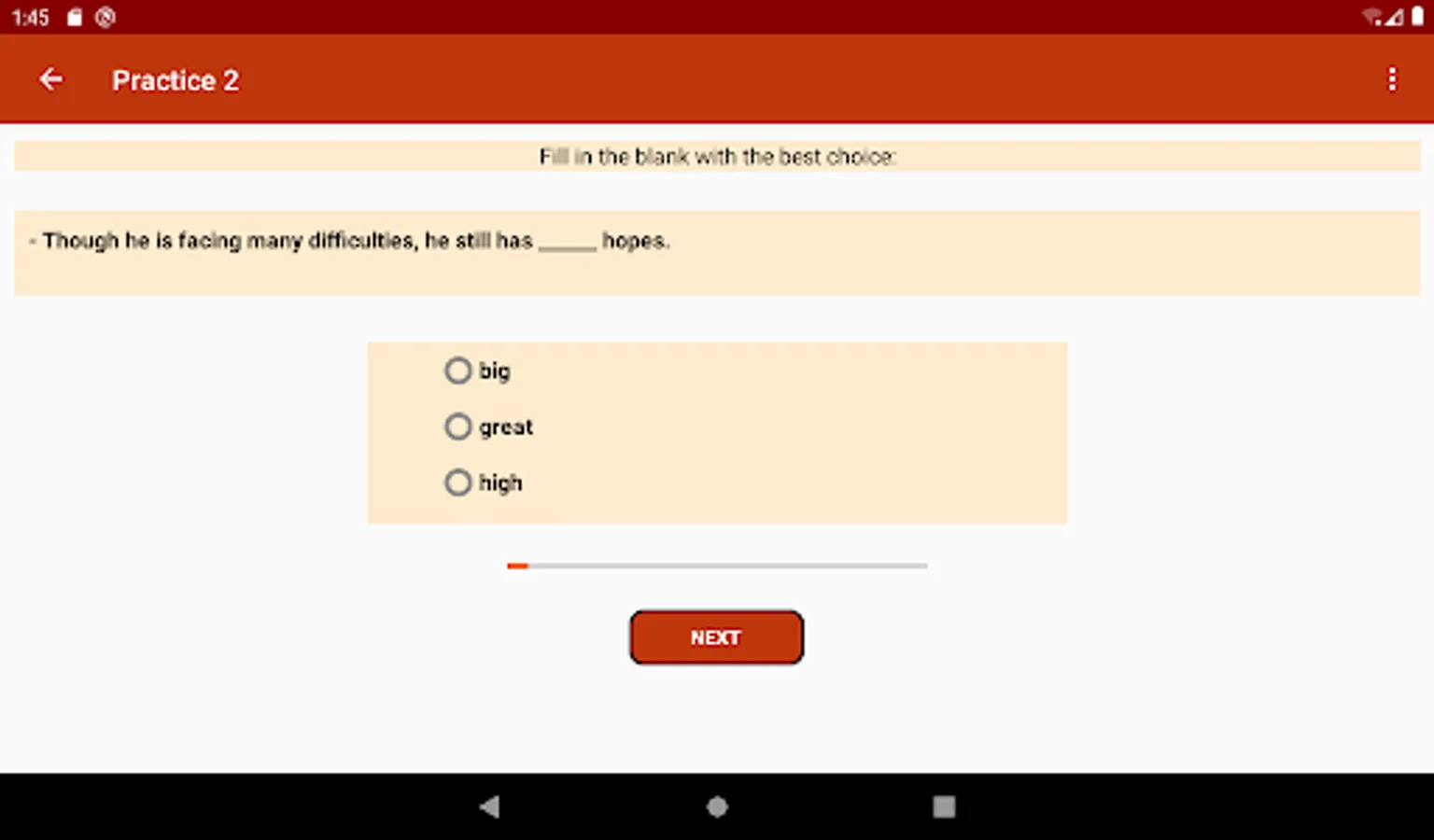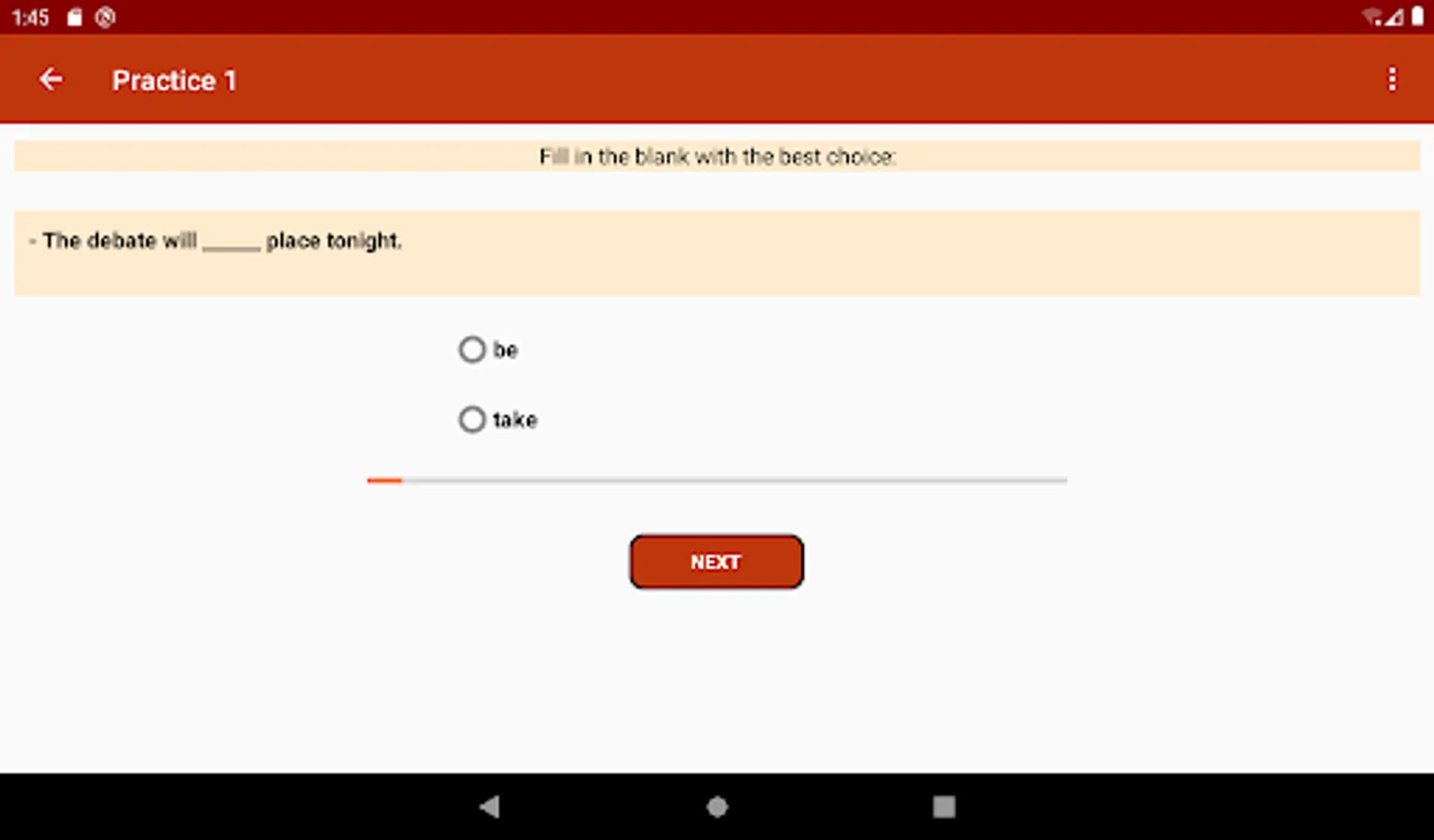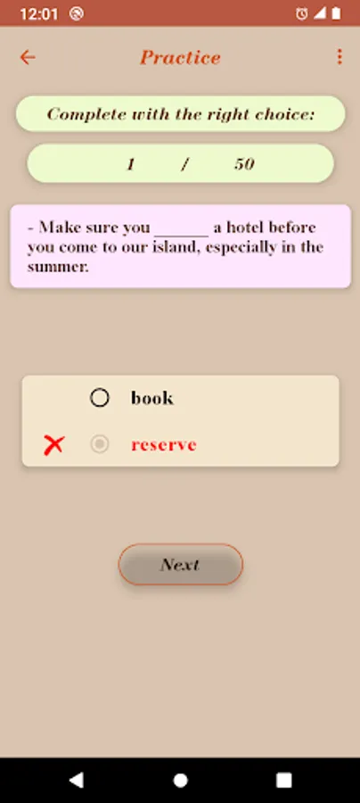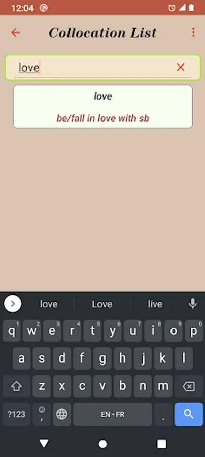 The List activity offers a scrolling list of the most common collocations which B2 level learners are expected to know and feel comfortable with.