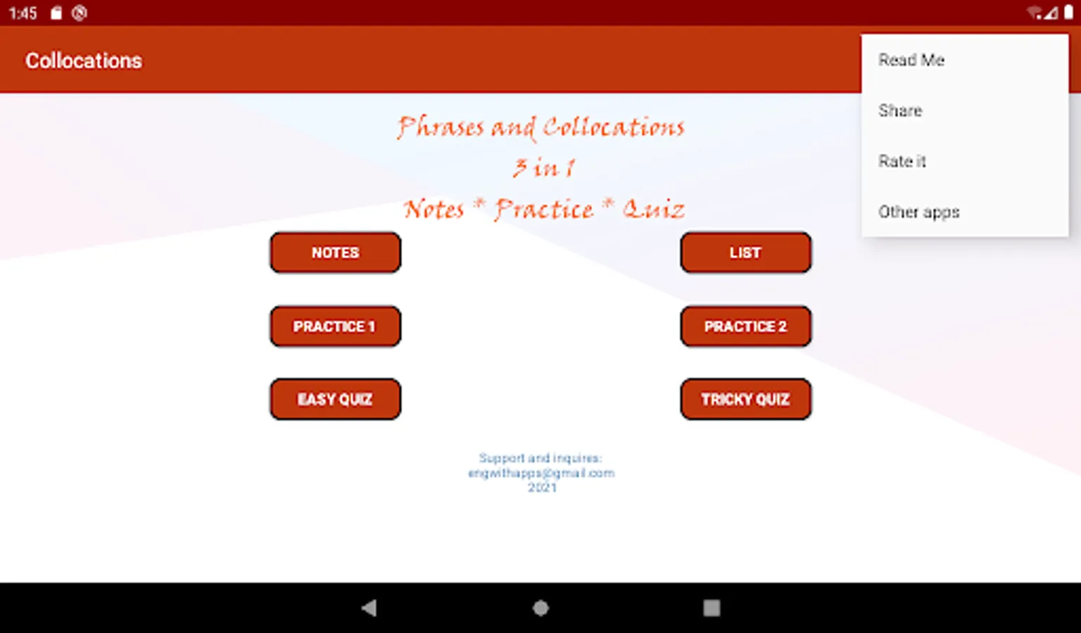 The READ ME activity offers information about the app, shows how to move around it ,and how to contact our team.
