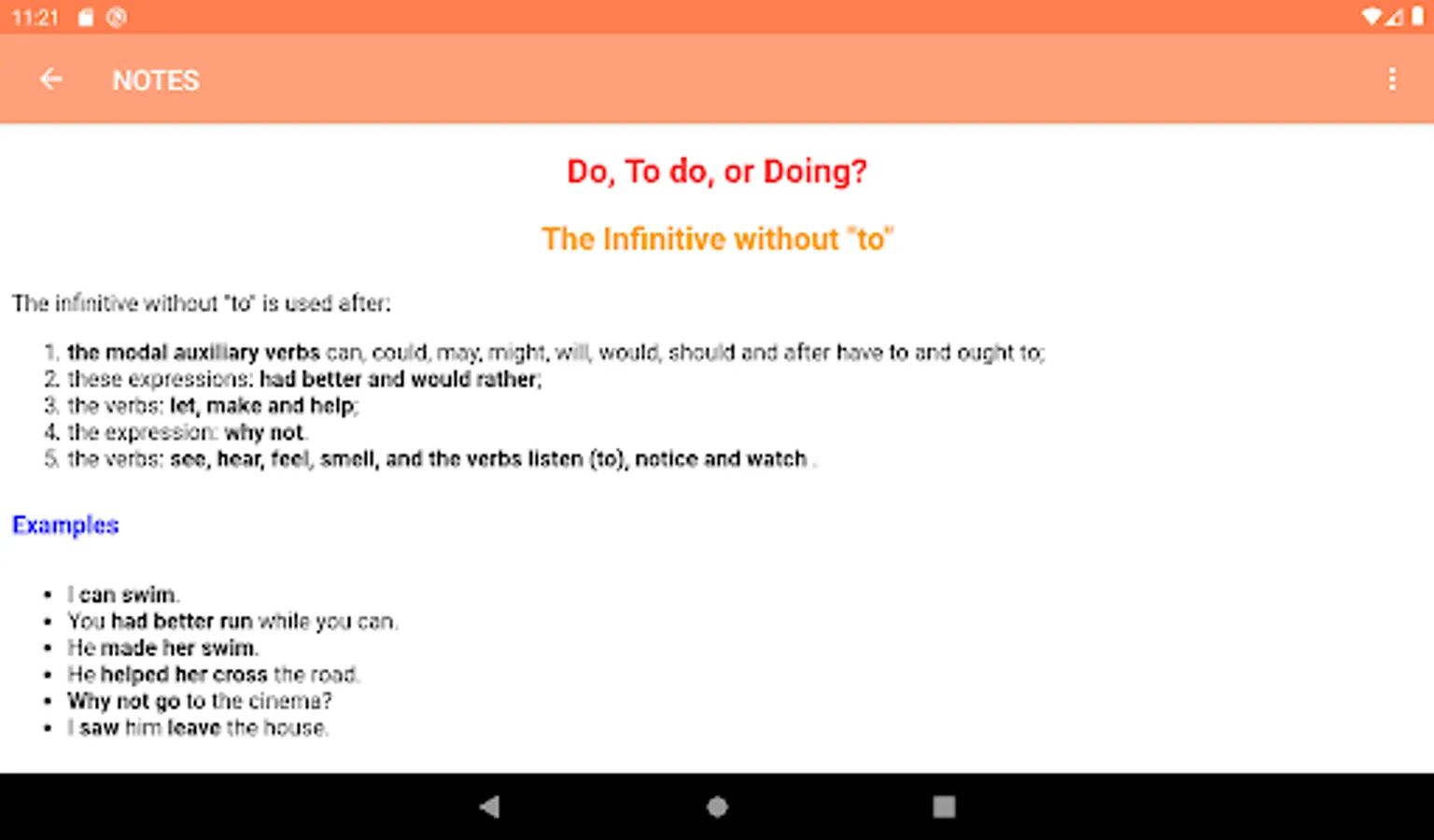 To use gerunds and infinitives correctly is a must for every English language learner. Here is an app offering detailed