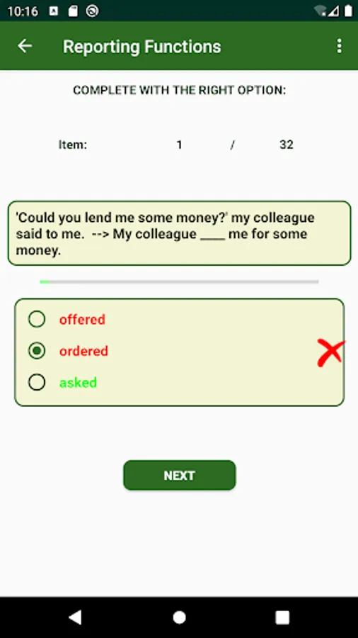 The app also offers 4 practice activities to practice reporting ORDERS, QUESTIONS, STATEMENTS and FUNCTIONS.