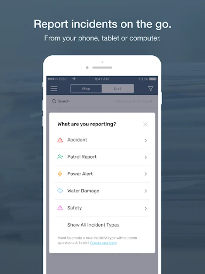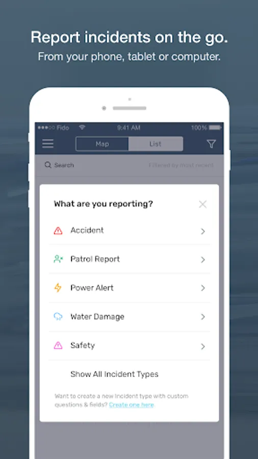 Tap into the powerful tools you need to quickly track and report incidents with the 1st Incident Reporting mobile application. This incident tracking app is the only product that lets you create your own incident types on the spot – anytime, anywhere.