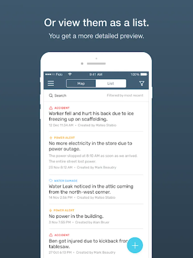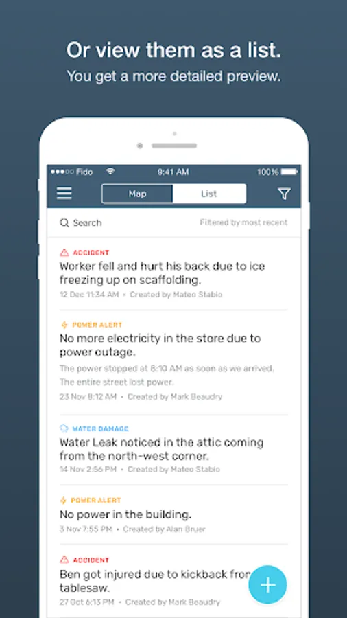 The incident reporting software allows your mobile workforce to evaluate damage or issues in a meaningful, unified manner. You will find it easier than ever to assess problems that require immediate attention and tackle other issues you need to review.
