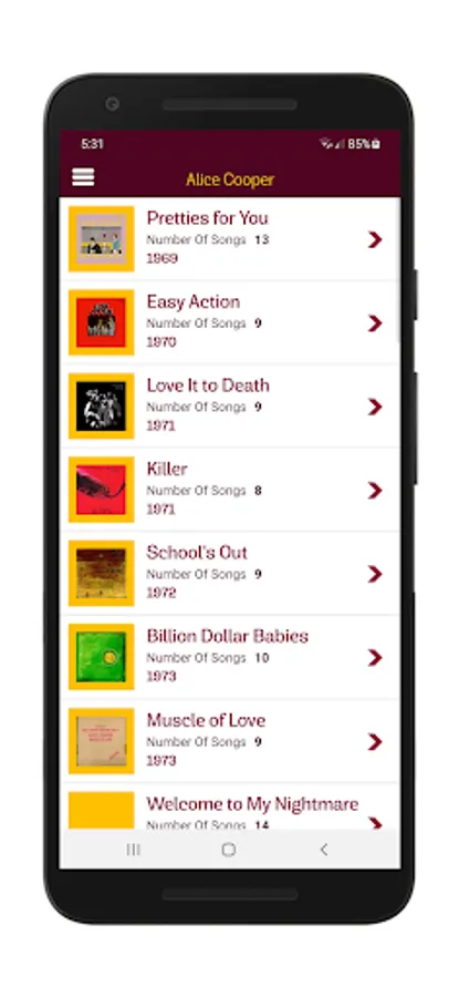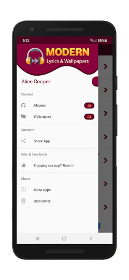 This is the first version of the app which has 28 albums for Alice Cooper including the 2021 album (latest) lyrics and a collection of cool 34 wallpapers that can be set as mobile background wallpaper.