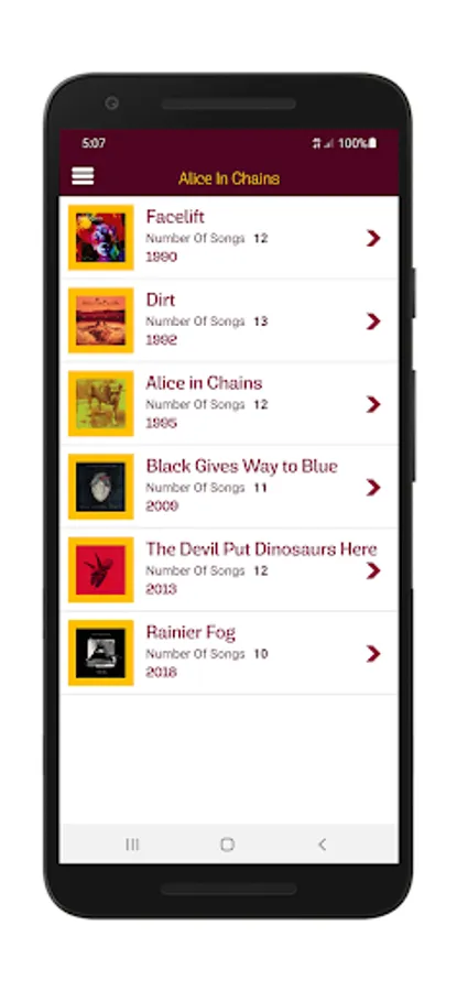 This is the first version of the app which has 6 albums for Alice In Chains including the 2018 album (latest) lyrics and a collection of cool 28 wallpapers that can be set as mobile background wallpaper.