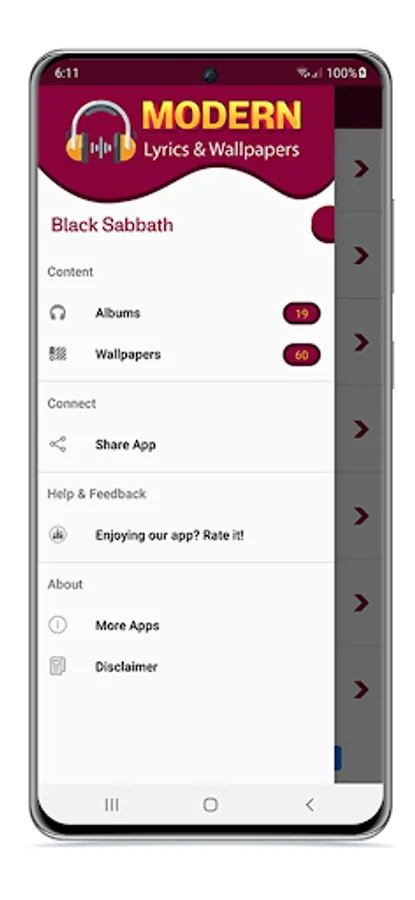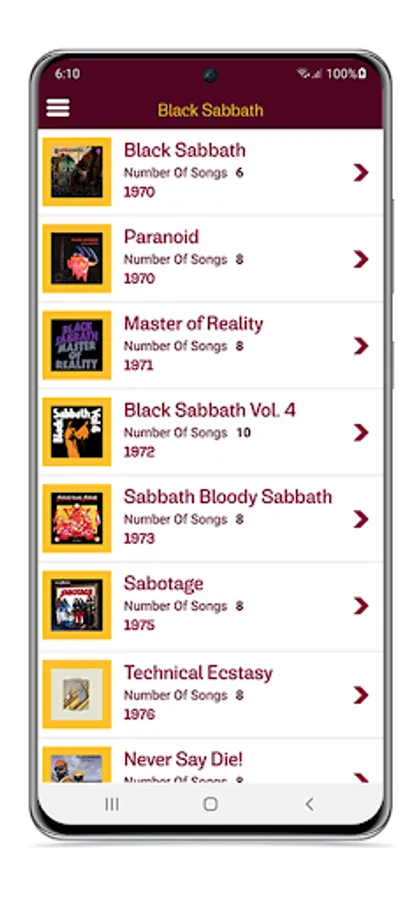 This is the first version of the app which has 19 albums for Black Sabbath including the 2013 album (latest) lyrics and a collection of cool 60 wallpapers that can be set as mobile background wallpaper.