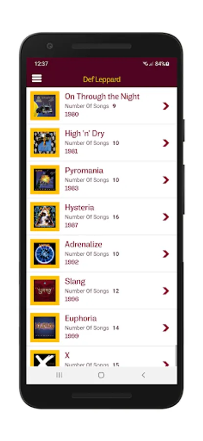 This is the first version of the app which has 12 albums for Def Leppard including the 2022 album (latest) lyrics and a collection of cool 30 wallpapers that can be set as mobile background wallpaper.