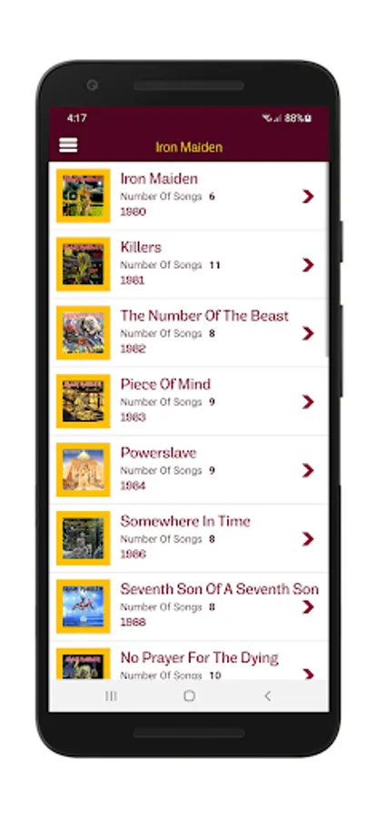 This is the first version of the app which has 17 albums for Iron Maiden including the 2021 album (latest) lyrics and a collection of cool 120 wallpapers that can be set as mobile background wallpaper.