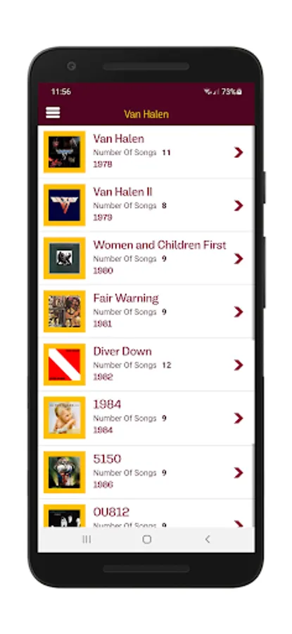 This is the first version of the app which has 12 albums for Van Halen including the 2012 album (latest) lyrics and a collection of cool 50 wallpapers that can be set as mobile background wallpaper.
