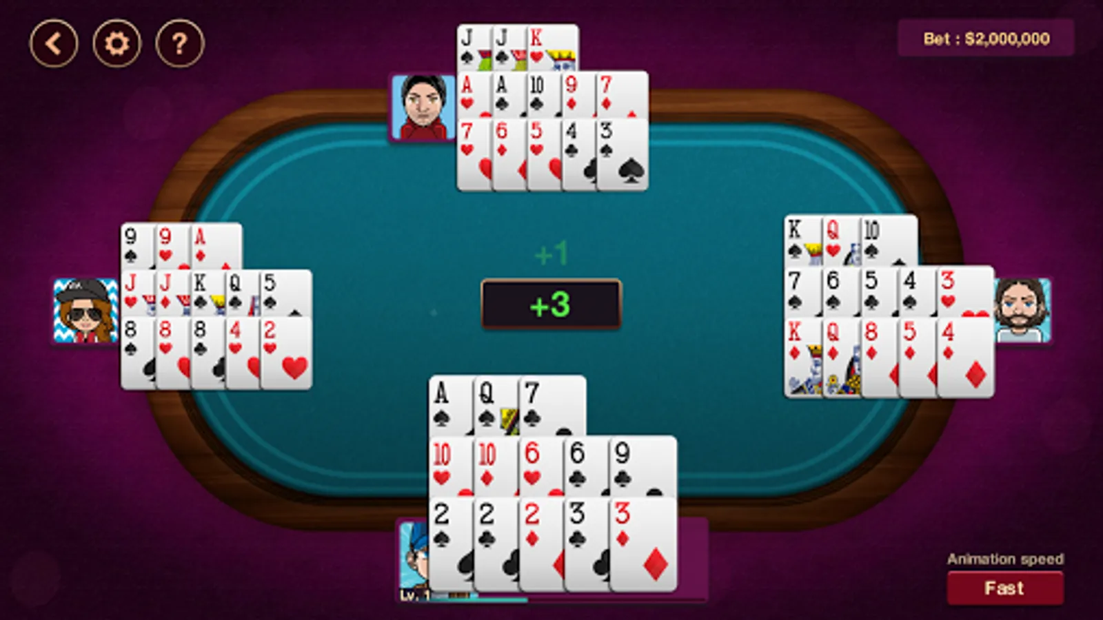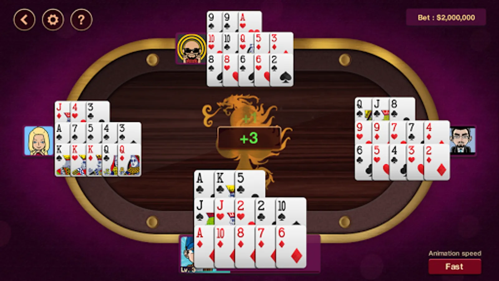 The main purposes of Greenleaf Game Chinese Poker Offline is creating a fun simulated game for Chinese Poker Offline lovers and help you to improve your card game skills.