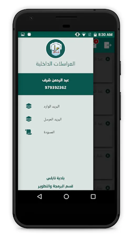 يتيح التطبيق لموظفي البلدية امكانية التواصل من خلال ارسال الايميلات واستقبالها واضافة خاصية الاشعارات.