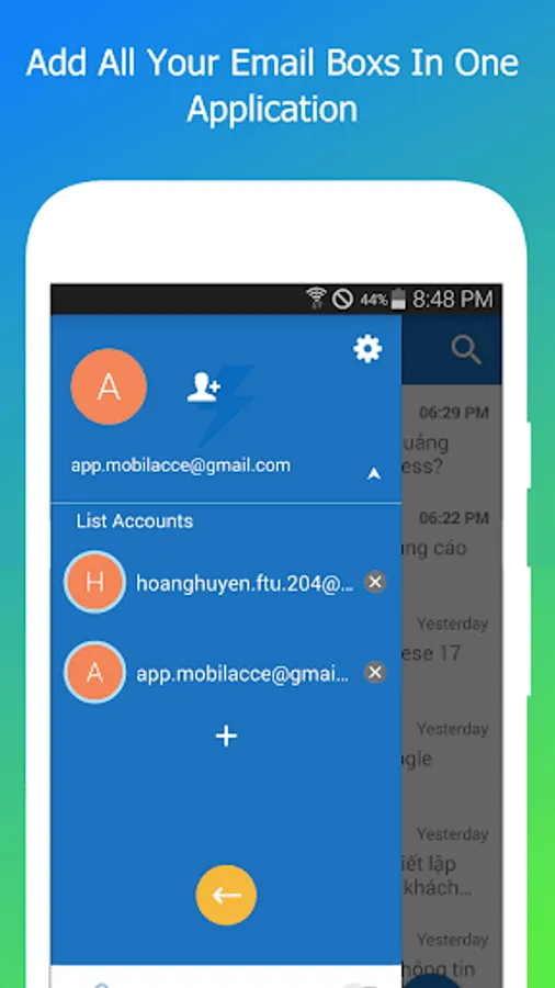 + Easily have access to various popular email service providers including: Gmail, Yahoo Mail, Outlook, Hotmail, Zoho Mail ...