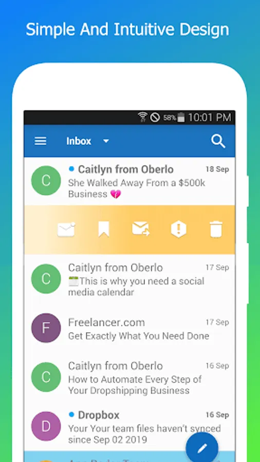 + Create, read, send e-mails, check your mailbox, and so much more.... with a blink of an eye thanks to a well-designed interface and smart user experience