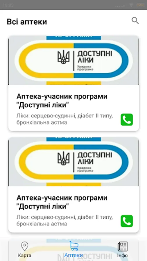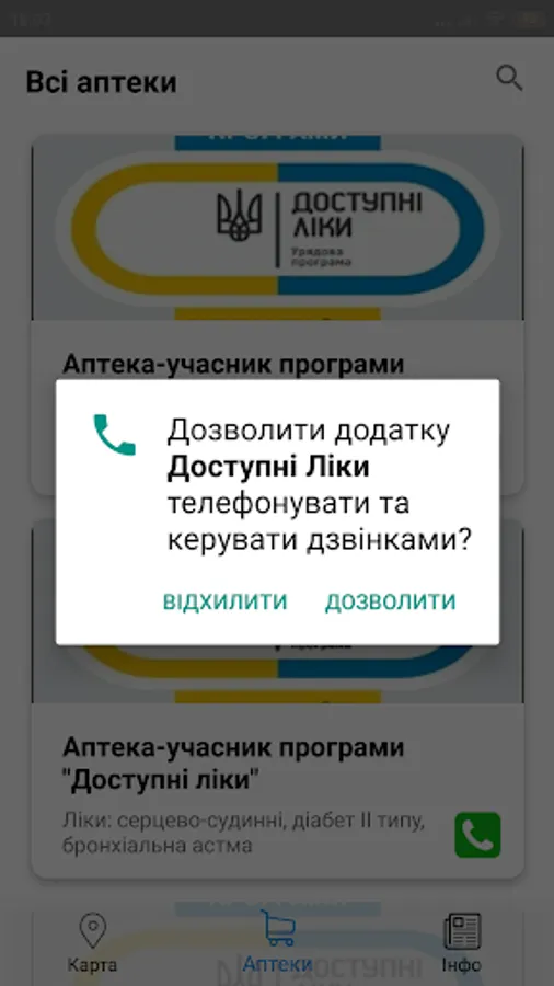 3) Telephone numbers of pharmacies and the opportunity to call from the application.